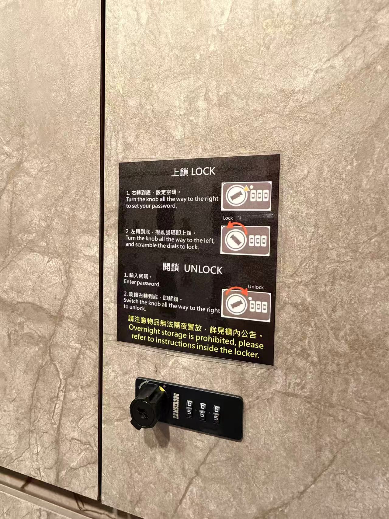 長榮航空貴賓室行李置物櫃鎖